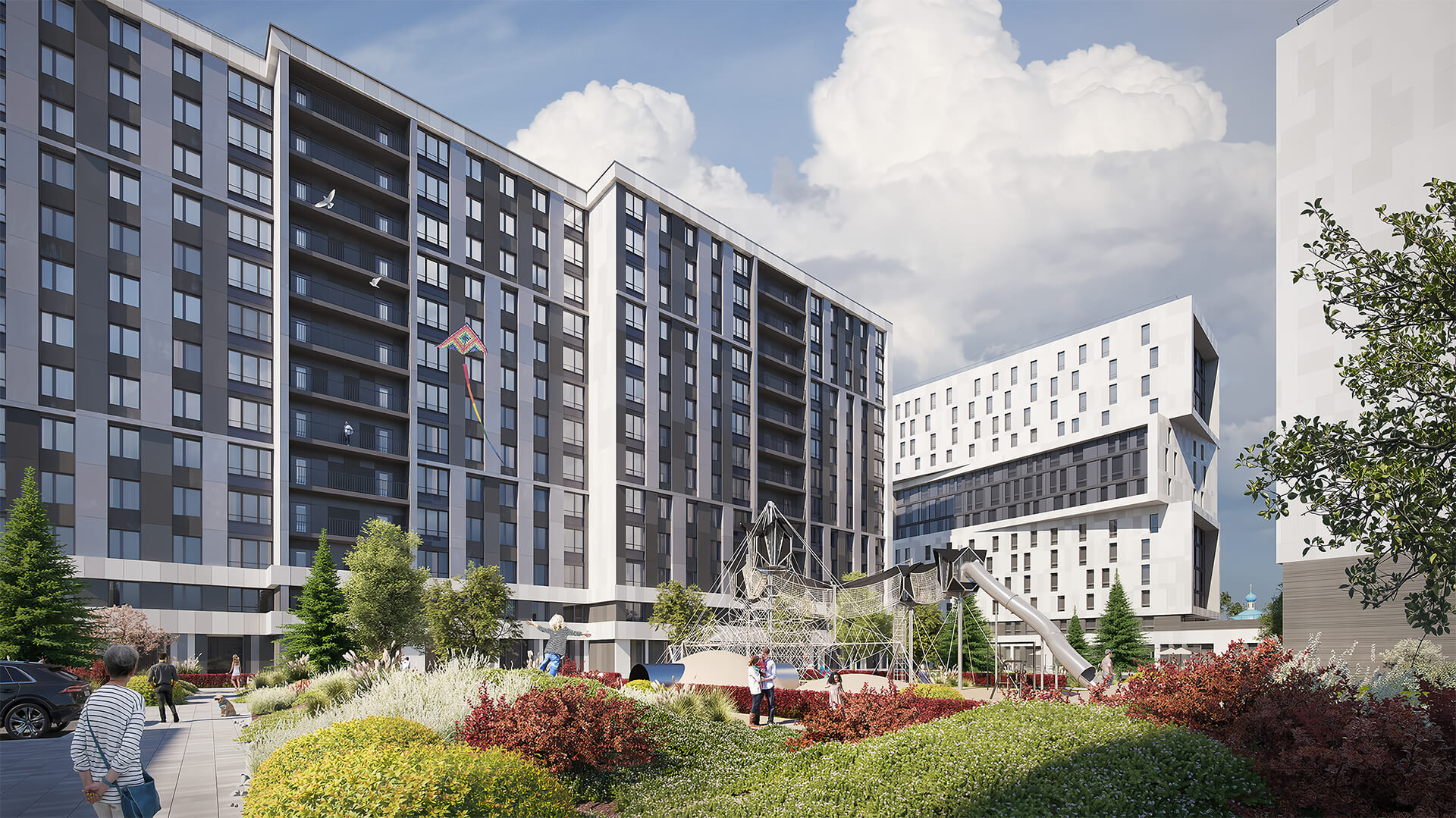Благоустройство территории «Нигилиста» нацелено на создание комфортной и безопасной среды. Ландшафтный дизайн двора сочетает элементы природы и урбанистики, предлагая зоны для активного и спокойного отдыха. Здесь расположены детские и спортивные площадки, прогулочные аллеи и места для релаксации. Современные системы освещения создают уютную атмосферу в любое время суток, а концепция "двор без машин" обеспечивает безопасность для пешеходов.